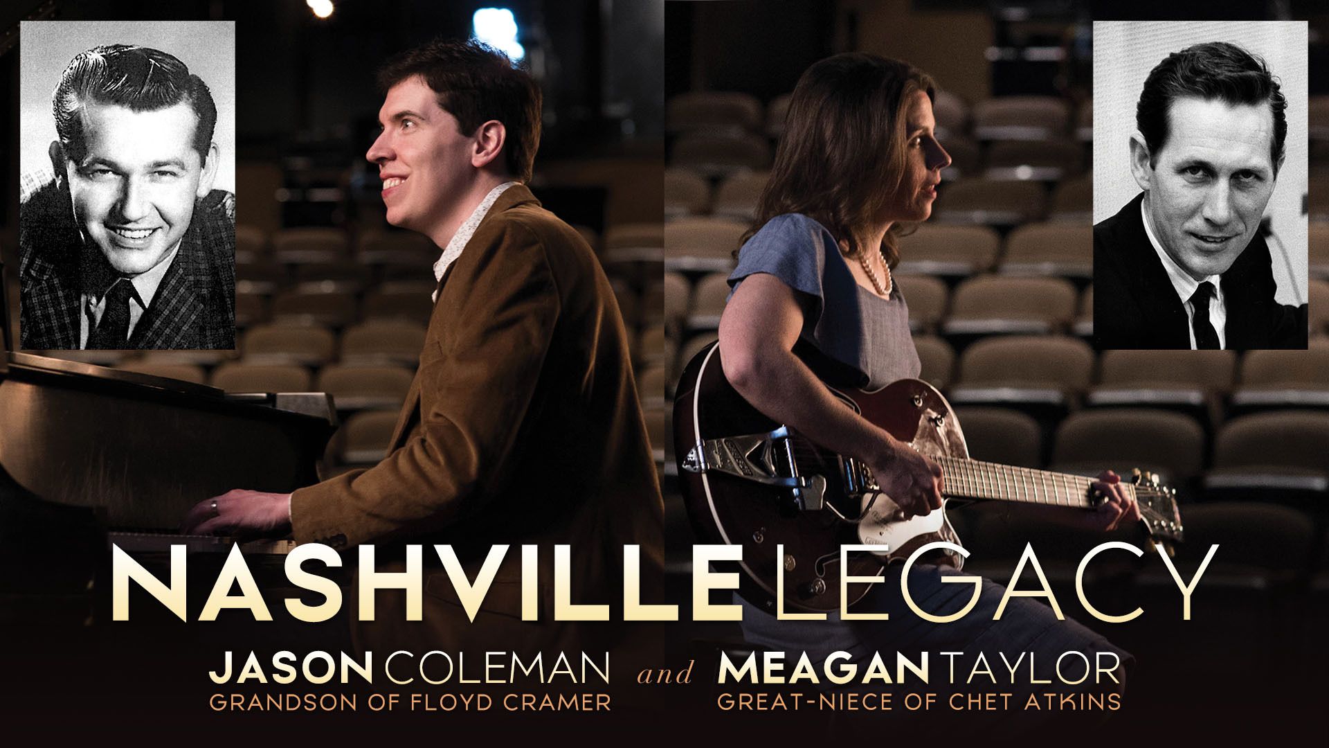 North Carolina, here I come again! I’m teaming up with guitarist Meagan Taylor to bring a concert of Nashville country classics to Rocky Mount, honoring the incredible Nashville Legacy of my Grandad Floyd Cramer and Meagan’s Uncle Chet Atkins. This will be my fifth concert at the Dunn Center since my first performance there 15 years ago (!!) – and every visit gets better and better!